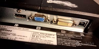 Vendo 2 Monitor Led perfettamente funzionanti, marca: HP, Modello: EliteDisplay E201. Completi di cavo DisplayPort, cavo VGA e cavo di alimentazione. Caratteristiche principali: Schermo TFT LCD Widescreen da 50,8 cm (20 pollici) Area immagine visualizzabile (diagonale) Risoluzione 1600 x 900 Pannello Antiriflesso Retroilluminazione LED Capacità di inclinazione da -5° a 30° Rotazione del display in modalità orientamento verticale Ingresso segnale video: VGA analogico (cavo incluso), DVI digitale e DisplayPort digitale (cavo DisplayPort incluso). Regolazioni On-Screen Display (OSD) in più lingue per una configurazione più semplice e ottimizzazione dello schermo. Possibilità di regolazione dell’orientamento e dell’altezza 360° ha una barra altoparlante HP . Prezzo 10 euro cadauno, solo ritiro a mano . Solo contatti telefonici al 3391003687.