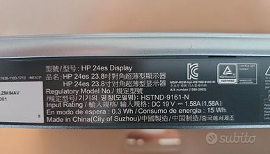 monitor con display 23,8 IPS 1920x1080, angolo visualizzazione 178°, luminosita' 250 cd/m, contrasto 1000:1, frequenza aggiornamento 50/60 hz. Venduto senza imballo originale, con accessori come da foto.