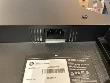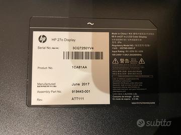 Monitor HP del 2017 con LCD a colori. Da 27 pollici. Venduto con cavo di alomemtazione. Pergetto senza graffi o probimi al monitor.