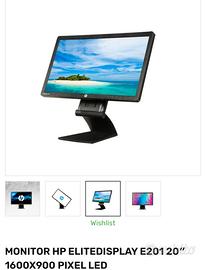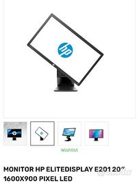 Monitor Hp elite 20 pollici black HD 16:9. LED Monitor ruotabile inclinabile e regolabile in altezza