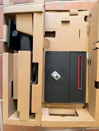 Monitor con supporto da scrivania completo di cavi di alimentazione, mouse e manuale di installazione.