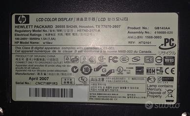 Vendo monitor HP W19eV da 19 pollici, perfettamente funzionante, con schermo nitido e colori vividi.