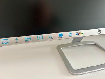 Vendo monitor HP 24es da 24 pollici, uno dei modelli più sottili e belli prodotti da HP. Perfetto per ufficio, studio, smart working o gaming leggero grazie alla qualità dei colori del pannello IPS. Caratteristiche principali: • Design Minimal: Spessore ridottissimo e scocca in alluminio spazzolato. Praticamente senza bordi su tre lati (ottimo per postazioni multi-monitor). • Qualità Visiva: Risoluzione Full HD (1920 x 1080) con tecnologia IPS che garantisce angoli di visione ampi (178°) e colori realistici. • Connettività: 1 porta HDMI e 1 porta VGA. • Tecnologia: Certificazione Technicolor Color e modalità Low Blue Light per non affaticare gli occhi dopo ore di utilizzo. Il monitor è in ottime condizioni estetiche e funzionali, senza graffi sul display o pixel bruciati. Possibile spedizione