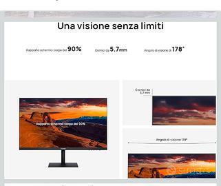 Vendo causa inutilizzo HUAWEI Display 23.8" Monitor, 75 Hz, AMD FreeSync, Display FullView da 1080P, Gamma di Colori NTSC del 72%, Cornici da 5.7 mm, Rapporto Schermo-Corpo del 90%, Certificazioni TÜV Rheinland, Black.