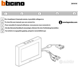 MONITOR LCD 7” POLLICI + TELECOMANDO 391419 Bluetooth Biticino Legrand TVCC