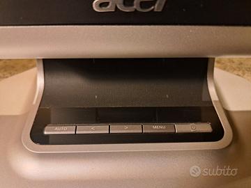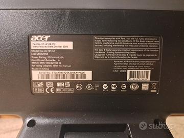 Vendo Monitor LCD ACER AL1951 A, formato 4:3, 19 pollici, risoluzione 1280x1024, connessione VGA e DVI, con altoparlanti per audio integrati.