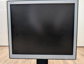 Monitor LCD Nec 17 pollici, modello 1760NX con piedistallo regolabile in altezza ed inclinazione. Piccolo segno sul display visibile solo in contro luce ed invisibile nell'uso normale dello schermo. Doppio ingresso, VGA e DVI, completo di tutti i cavi.