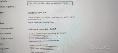 Vendo monitor come da titolo. Ottimo per lavoro o per gaming. Usato, ma in ottimo stato, nessun graffio o ammaccature né danni sul pannello dello schermo. Vendo con cavo di alimentazione, però sono sprovvisto di scatola originale. Di seguito le specifiche reperite su sito philips: Immagine/Display: tipo schermo LCD LCD TFT Tipo con retroilluminazione Sistema W-LED Dimensioni pannello 27"/68,6 cm Area di visualizzazione effettiva 597,6 (O) x 336,2 (V) mm Formato 16:9 Risoluzione ottimale 1920 x 1080 a 60 Hz SmartResponse (valore tipico) 1 ms (grigio su grigio) Tempo di risposta (tipico) 3,5 Luminosità 300 Fattore di contrasto (tipico) 1200:1 SmartContrast 20.000.000:1 Pixel Pitch 0,311 x 0,311 mm Angolo visuale 178° (O) / 170° (V) @ C/R > 5 Miglioramento dell'immagine SmartImage Lite Colori display 16,7 M Frequenza di scansione 30 - 83 kHz (O) / 56 -75 hz (V) sRGB Sì Connettività: Ingresso segnale VGA (analogico) DVI-D (digitale, HDCP) HDMI Ingresso sincronizzazione Sincronizzazione separata Sync su verde Audio (ingresso/uscita) Uscita cuffia Ingresso audio PC