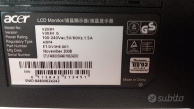 Un monitor acer 20 pollici lcd usato cedo per inutilizzo perfettamente funzionante.