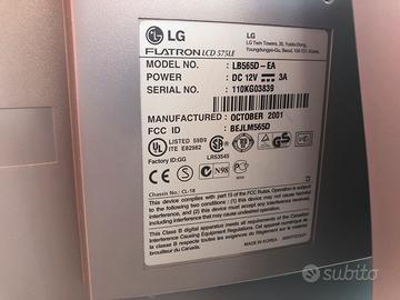 Monitor LG 15 pollici, mod. FLATRON LCD 575LE, solo ingresso VGA, menù di configurazione a pulsanti touch, alimentazione 12 V. con alimentatore esterno.