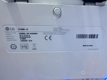 Vendo monitor LG 27UD88 da 27 pollici con risoluzione 4K UHD (3840×2160), pannello IPS e porta USB-C con funzionalità di ricarica fino a 60W.