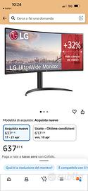 Vendo causa inutilizzo. Monitor Lg 34 pollici 2k 160hz, display port, hdmi o type c (per rusarlo con macbook) In perfette condizioni, pari al nuovo.