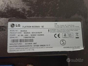 Monitor LG Flatron M228WA-BZ. Funge anche da televisore LCD, con decoder (no DVB-T2). Schermo 22 pollici, risoluzione di 1680x1050 pixel, formato 16:10. Anno 2007. Spese trasporto incluse! Consegna a mano zona Thiene. Eventuale spedizione con poste italiane quando possibile o altro corriere. Spedisco solo con pagamento anticipato. Per eventuali informazioni contattatemi via WhatsApp, sms o telefonicamente al numero 353 4179307, solitamente rispondo la sera o quanto prima.