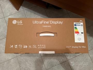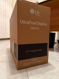 Monitor LG UltraFine da 24 Pollici specifico per Mac. Risoluzione 4K. Audio integrato e luminosità si possono regolare dalla tastiera del Mac.