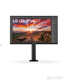 Monitor LG UltraFine Ergo LED display 68,6 cm (27") 3840 x 2160 Pixel 4K Ultra HD Nero [27UN880P-B.AEU] con supporto. Acquistato il 20 ottobre 2023, ho acquistato anche l’estensione della garanzia per altri tre anni, prodotto ancora in garanzia fino a ottobre 2028. Compatibile anche con Mac M2 e altri. LG UltraFine Ergo. Dimensioni diagonale schermo: 68,6 cm (27"), Risoluzione del display: 3840 x 2160 Pixel, Tipologia HD: 4K Ultra HD, Tecnologia display: LED, Tempo di risposta: 5 ms, Rapporto d'aspetto nativo: 16:9, Angolo di visualizzazione (orizzontale): 178°, Angolo di visualizzazione (verticale): 178°. Altoparlanti incorporati. Hub USB integrato. Montaggio standard VESA, Regolazione altezza. Colore del prodotto: Nero Display DIMENSIONI DIAGONALE SCHERMO 68, 6 cm (27") RISOLUZIONE DEL DISPLAY 3840 x 2160 Pixel RAPPORTO D'ASPETTO NATIVO 16:9 TECNOLOGIA DISPLAY LED TOUCH SCREEN No TIPOLOGIA HD 4K Ultra HD TIPO DI PANNELLO IPS TEMPO DI RISPOSTA 5 ms FORMA DELLO SCHERMO Piatto RAPPORTO DI CONTRASTO 1000:1 TEMPO MASSIMO DI REFRESH 60 Hz COLORI DEL DISPLAY 1, 07 miliardi di colori LUMINOSITÀ DEL DISPLAY (TIPICA) 350 cd/m² SCHERMO ANTIRIFLESSO Sì ANGOLO DI VISUALIZZAZIONE (ORIZZONTALE) 178° ANGOLO DI VISUALIZZAZIONE (VERTICALE) 178° DOT PITCH 0, 1554 x 0, 1554 mm DIMENSIONI DIAGONALE SCHERMO (CM) 68, 4 cm HIGH DYNAMIC RANGE (HDR) SUPPORTATO Sì TECNOLOGIA HIGH DYNAMIC RANGE (HDR) High Dynamic Range (HDR) 400, High Dynamic Range 10 (HDR10) GAMMA CROMATICA STANDARD sRGB COPERTURA SRGB (TIPICA) 99% Connettività HUB USB INTEGRATO Sì HDMI Sì ALTOPARLANTE / CUFFIA / SPINOTTO DI USCITA Sì QUANTITÀ DI PORTE DOWNSTREAM DI USB TIPO-A 2 QUANTITÀ DI PORTE DOWNSTREAM DI USB DI TIPO-C 1 MODALITÀ ALTERNATIVA DISPLAYPORT USB DI TIPO C Sì ALIMENTAZIONE USB Sì FORNITURA DI ALIMENTAZIONE USB FINO A 60 W QUANTITÀ PORTE HDMI 2 QUANTITÀ DISPLAYPORTS 1 VERSIONE DISPLAYPORT 1.4 USCITE PER CUFFIE 1 CONNESSIONE CUFFIA 3, 5 mm TIPO DI PORTA DI RICARICA USB tipo-C JACK DC-IN Sì