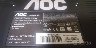 Monitor AOC 19", completo di base supporto, cavi alimentazione e connettore VGA. Prezzo non trattabile.