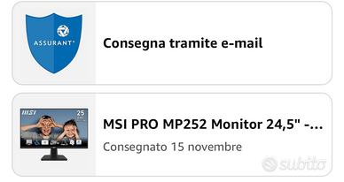 Vendo monitor MSI Pro e 25 pollici da gaming 100hz, acquistato a Novembre 2025 è nuovo e ha ancora 2 anni di garanzia. Consiglio per Pc o Ps5 per poter sfruttare gli fps.