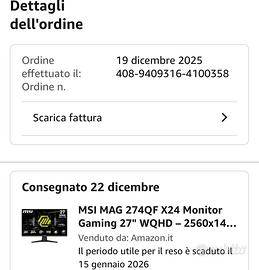 Comprato il 22 dicembre 2025 quindi praticamente nuovo con scatola e fattura d’acquisto Caratteristiche: Msi MAG 274QF X24 Monitor Gaming 27" WQHD - 2560x1440 Rapid IPS, 240Hz, 0,5ms, HDR Ready - AMD FreeSync Premium, Eye Care, Al Vision, HDMI 2.0b, DP 1.4a, Supporto Inclinabile, VESA Mount. Scambio a mano zona Eur/Laurentina Prezzo leggermente trattabile.
