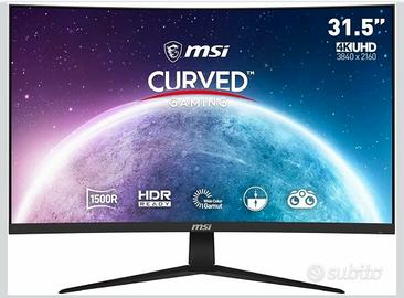Monitor MSI G321CUV 31.5" Curvo 4K UHD in condizioni pari al nuovo. Utilizzato pochissimo, è perfettamente funzionante e completamente privo di graffi o segni d’usura. Viene venduto imballato nella sua scatola originale, con tutti gli accessori inclusi.