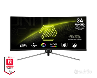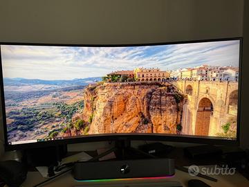Come nuovo usato per 8 mesi. CurvatureCurve 1000R Panel TypeVA Resolution3440x1440 (UWQHD) Pixel pitch (mm)0.23175(H)x0.23175(V) Aspect Ratio21:9 Dynamic Refresh Rate technologyFreeSync Premium Dynamic Refresh Rate Activated Range48 ~ 180Hz HDR (High dynamic range)HDR Ready SDR Brightness (nits)300 Contrast Ratio3000:1 DCR (Dynamic Contrast Ratio)100000000:1 Signal Frequency68.47~268.2 KHz(H) / 48~180 Hz(V) Refresh Rate180Hz Response Time (MPRT)1ms(MPRT) Response Time (GTG)4ms
