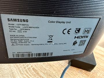 VENDO MONITOR SAMSUNG CURVO 27" – Full HD Vendo monitor Samsung C27F390FHU da 27 pollici curvo, colore nero. Caratteristiche: Modello: Samsung C27F390FHU Schermo: 27" Curvo 1800R, pannello VA Risoluzione: Full HD 1920x1080, 16:9 Refresh: 60Hz, tempo risposta 4ms Porte: HDMI + VGA Altro: Attacco VESA, tecnologia Eye Saver e Flicker Free Condizioni: Usato in ottime condizioni. Nessun pixel bruciato, nessun graffio sullo schermo. Funziona perfettamente. [Modifica se ha segni] Dotazione: Monitor + cavo alimentazione. Prezzo: €50 Per foto reali o info scrivetemi in chat. No perditempo