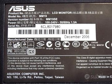 Monitor Asus MM19SE 19-Zoll SXGA 1280x1024 5:4 60Hz 8ms 400cd/m² 700:1 VGA Luminosità 400 cd/m² Risoluzione del display: 1280 x 1024 Pixel, Altoparlanti incorporati