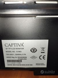 Vendo, causa inutilizzo, monitor PC marca CAPTIVA 19". Perfetto, come nuovo. Formato 4:3. Non spedisco, consegna a mano. 30€ non trattabili.