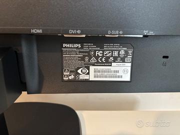 Vendo monitor Philips da 24 pollici (modello esatto 243V7QDSB/00), perfetto per postazione PC, smart working o come secondo schermo per il portatile. Il pannello è un Full HD (1920x1080) con tecnologia IPS, che garantisce colori brillanti e ottimi angoli di visione. Presenta inoltre tecnologie per non affaticare gli occhi (Flicker-free e LowBlue Mode) se lo si usa per molte ore. Specifiche principali e connessioni: Schermo: 24" (23,8" effettivi) IPS LED, finitura opaca antiriflesso Risoluzione: Full HD (1080p) Porte video: 1x HDMI, 1x DVI, 1x D-SUB (VGA) Audio: Uscita jack audio per collegare cuffie o casse direttamente al monitor Il monitor è usato ma in condizioni estetiche e funzionali perfette (nessun graffio sul pannello o pixel bruciati). Prodotto ad agosto 2020. Vendo comprensivo della sua base originale e del cavo di alimentazione. Solo scambio a mano su Roma (ci possiamo accordare per la zona di incontro).