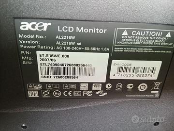 Monitor Acer LCD per pc da 22" , in buono stato e funzionante, vendo a 20 euro.