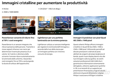 Vendo Philips B Line 245B1 (24”, QHD 2560×1440, IPS, 75Hz, 4ms). Monitor in ottime condizioni, funzionamento perfetto, basso utilizzo. Ha hub USB, altoparlanti integrati, PowerSensor/LightSensor e stand ergonomico (altezza/inclinazione/pivot). Ideale per smart working, grafica leggera e multimedia.