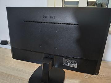 ✨ Caratteristiche principali Schermo Full HD da 27″ (1920×1080) con pannello IPS: colori vivaci, ampi angoli di visuale (178°/178°) — perfetto per film, lavoro o navigazione web. Tempo di risposta rapido (~4-5 ms) e luminosità di circa 250 cd/m²: fluidità e buona visibilità anche in ambienti luminosi. Tecnologia “Eye Friendly”: modalità LowBlue per ridurre la luce blu, Flicker-Free per affaticamento occhi minimo. Connessioni multiple: DisplayPort 1.2, HDMI e VGA — compatibile con PC, console, notebook e multitasking. Design moderno con cornice sottile: look elegante sulla scrivania, e montaggio VESA 100×100 mm per appenderlo al muro o usarlo con braccio. Philips ℹ️ Stato e condizioni Il monitor è stato usato con cura, tenuto in un ambiente non fumatori, senza graffi visibili sulla superficie dello schermo e con il piedistallo originale. Funziona perfettamente: nessun pixel morto, nessun problema alla retroilluminazione, nessuna riga sullo schermo. Consegno completo di alimentatore e cavi originali (o equivalenti) così sei subito operativo. ✅ Perché è un ottimo affare Ottimo rapporto qualità/prezzo: un 27″ IPS Full HD con queste caratteristiche vale ben più del prezzo che sto proponendo. Ideale come secondo monitor, per gaming leggero, lavoro, studio o visione film. Il formato 27″ dà respiro alla scrivania: più spazio per finestre, applicazioni, multitasking senza sacrificare qualità d’immagine. Riduce l’affaticamento occhi grazie alle funzioni integrate “occhio-friendly”.