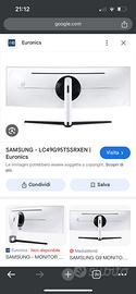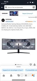 Samsung Monitor Gaming Odyssey G9 (C49G95), Curvo (1000R), 49", 5120x1440 (Dual QHD), 32:9, HDR1000, HDR10+, VA, 240 Hz, 1 ms, Freesync Pro, G-Sync, HDMI, USB 3.0, Display port, Ingresso Audio, HAS USATO