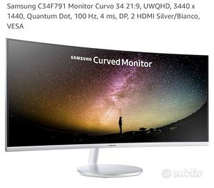 Samsung C34F791 Monitor Curvo 34 21:9, UWQHD, 3440 x 1440, Quantum Dot, 100 Hz, 4 ms, DP, 2 HDMI Silver/Bianco,