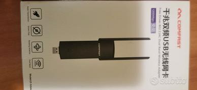 Come da titolo vendo monitor da gaming, Samsung S24D330H, 24 pollici, tempo di risposta 1ms, Full HD,come nuovo piu adattatore wifi comfast V2 1300 mbps, chipset MediaTek MT7612U, Dual Band 2.4G e 5G, usb 3.0, velocissima. Solo testato in quanto il mio pc ha gia la scheda wifi e bluetooth incorporato. Scambio a mano in Torino. prezzo per tutti e due 60 euro. Marcello 3297483983