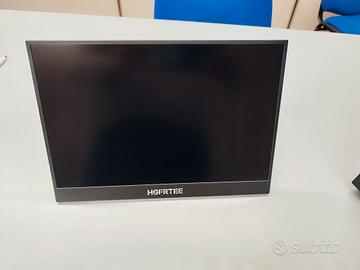 Monitor touchscreen portatile 14", risoluzione 1920×1200, display IPS 100% sRGB, USB-C e Mini HDMI, compatibile VESA, supporto pieghevole, doppi altoparlanti per laptop, PC e smartphone.