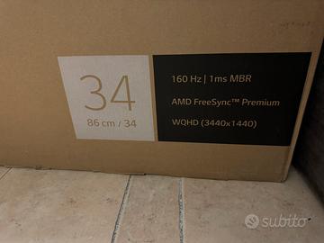 Vendo monitor gaming LG UltraGear 34GP63A-B da 34” curvo, risoluzione WQHD (3440x1440), refresh rate 160Hz, tempo di risposta 1ms MBR, compatibile con AMD FreeSync Premium.
