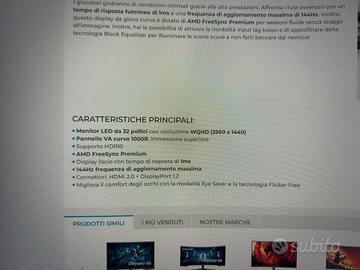 Monitor Samsung C32G55TQWR 32” Curvo, 144Hz, QHD 2K, HDR, condizioni perfette, compatibile con Playstation, Xbox, Nintento Switch e PC. Ritiro a mano presso Anguillara Sabazia, Roma e dintorni. Compreso di piedistallo originale e di piedistallo regolabile compatibile in vetro temperato.