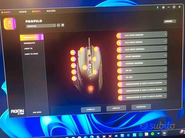Ha un ottima ergonomia, 10 tasti programmabili, un ottimo sensore di tracciamento e veloce risposta dei tasti, luci RGB.
