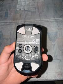 Mouse ausu rog keris wirless 20000 dpi argb con sticker ancora nuovi in uso da 1 anno mai dato problemi con 2 tasti laterali ottimo per il gaming competitivo.