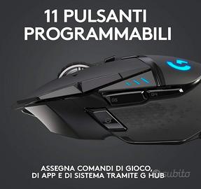 Logitech G G502 Mouse Gaming Wireless LIGHTSPEED, Sensore HERO 25K, 25600 DPI, RGB, 11 Pulsanti Programmabili, Batteria Lunga Durata, Memoria Integrata, Compatibile PC/Mac/Laptop, in perfette codizioni, pari al nuovo.