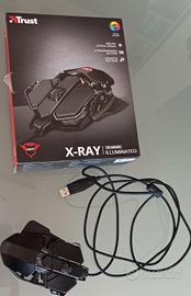 Mouse da gioco con design a raggi x, modello TRUST X-RAY PC LAPTOP ILLUMINATED GXT 138, usato ma in buono stato e funzionante, sensore a 4000dpi e illuminazione LED RGB. Scatola originale che pesa 350 gr (box con dimensioni 32/17/6 cm). Spese di spedizione escluse.
