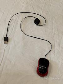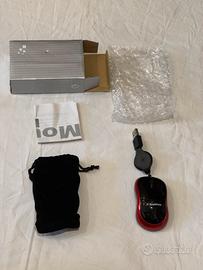 Vendo un mouse ottico portatile nuovo, in perfette condizioni. Include una custodia di stoffa. Il cavo USB estensibile raggiunge i 70cm. Ritiro a Milano in zona Lambrate.