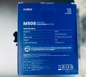 Nulea M508 King Wireless Trackball Mouse, design ergonomico, rotella di scorrimento 4D, facile controllo del pollice con 4 DPI regolabili, compatibile Bluetooth o USB per PC, laptop