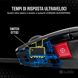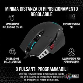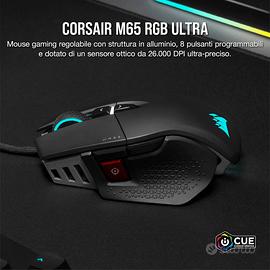 Corsair M65 RGB ULTRA Rev 2.0, mouse gaming FPS regolabile, Nero Icona struttura in alluminio: La struttura in alluminio anodizzato dell’M65 RGB ULTRA è sinonimo di resistenza e durevolezza unite a uno stile familiare. Sensore ottico CORSAIR MARKSMAN da 26.000 DPI: Con una straordinaria sensibilità nativa di 26.000 DPI e un tracking di 650 pollici al secondo (IPS) con un’accelerazione fino a 50 G. Switch ottici: Offrono reazioni ultra veloci e accurate, e con la garanzia di 70 milioni di clic ti consentiranno di giocare per moltissimo tempo. Tecnologia di hyper-processing CORSAIR AXON: Rileva e trasmette i tuoi movimenti e i tuoi clic al PC con una velocità fino a 8 volte superiore rispetto ai mouse gaming tradizionali. Il controllo grazie alla fusione dei sensori: unisce un giroscopio a sei assi e un accelerometro che registra anche la minima distanza di riposizionamento quando decidi di sollevare il mouse. Sistema di pesi regolabile: Regola il baricentro e il peso dell’M65 RGB ULTRA da 97 g a 115 g con un massimo di sei pesi inclusi.