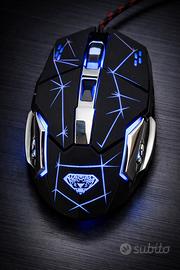 Vendo mouse gaming/professionale con illuminazione LED RGB (colori come in foto) e 6 tasti totali, super comodo ed ergonomico. Design futuristico con finitura opaca e dettagli luminosi, ideale per gaming (FPS/MOBA), studio, smart working e uso quotidiano su PC e laptop.