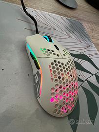 Vendo causa passaggio ad altro il mio mouse Glorious Model O di colore bianco opaco insieme al bumper reggi cavo, completo di scatoli.