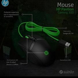 HP 300 Mouse Pavilion, 7 Tasti Programmabili di cui 2 per Pollici, DPI da 5.000, LED RGB Personalizzabile Effetti Statici o Dinamici, Impugnatura in Gomma, Nero/Verde