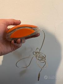 Vendo mouse ottico con connessione USB, design arancione trasparente molto particolare e moderno.