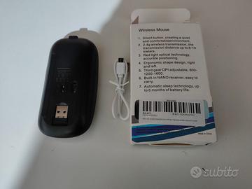 MOUSE ricaricabile WIRELESS SENZA FILI CON CHIAVETTA USB nuovo ricaricabile con pila incorporata e completo di cavo USB per la ricarica compatibile con tutti i sistemi windows vendo solo ad euro 5 intrattabili. eventuale spedizione a carico acquirente. tel. 3771194175