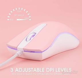 Mouse rosa con filo USB - Nuovo per computer fisso portatile e da gaming.